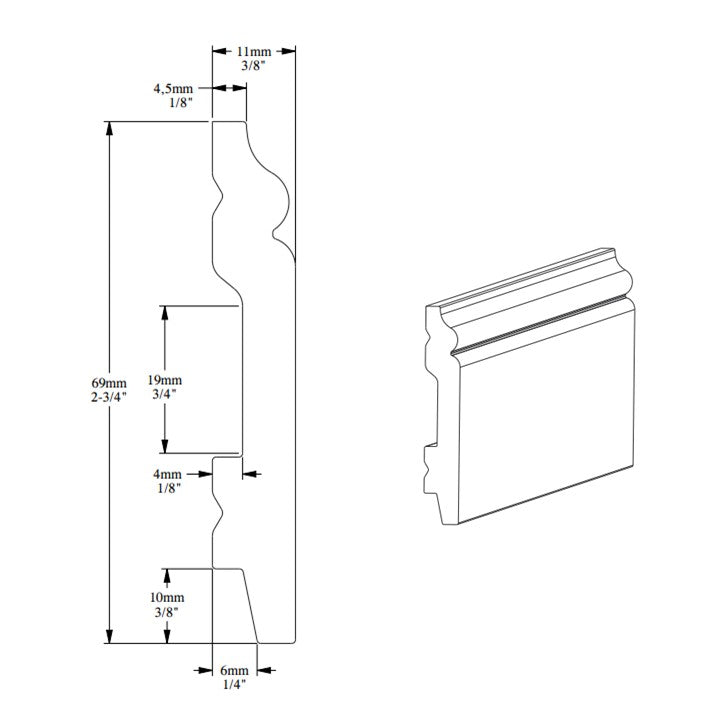Small Ogee Skirting | 6.9cm x 200cm | No.165