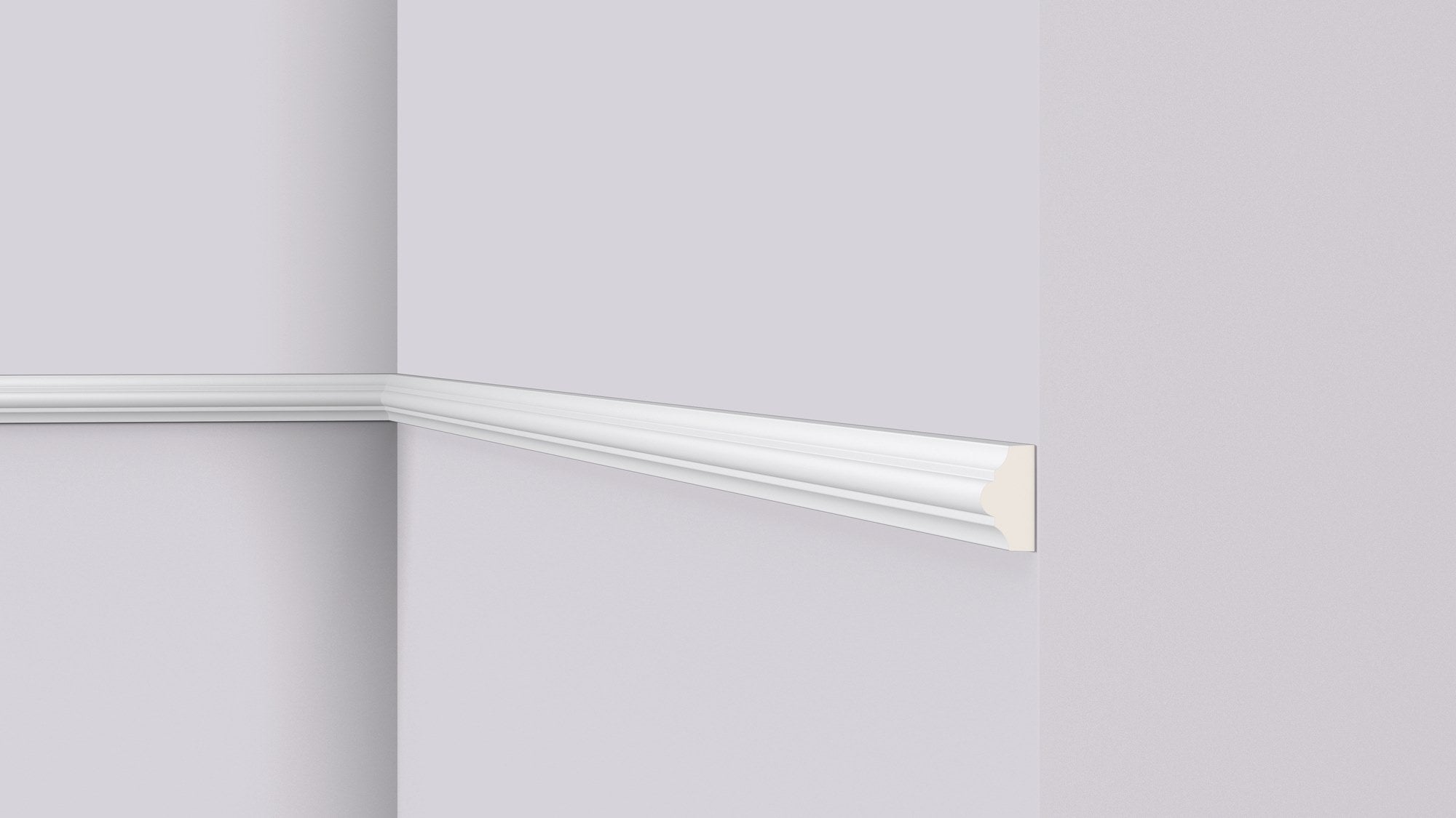 Each length measures 200cm, with an approximate height of 3.1cm and projection of 1.2cm. Made from lightweight, impact-resistant Studio Polymer, this moulding offers superior moisture protection and long-lasting durability. Supplied white pre-primed for easy finishing, it installs simply with adhesive, suitable for both residential and commercial interiors.
