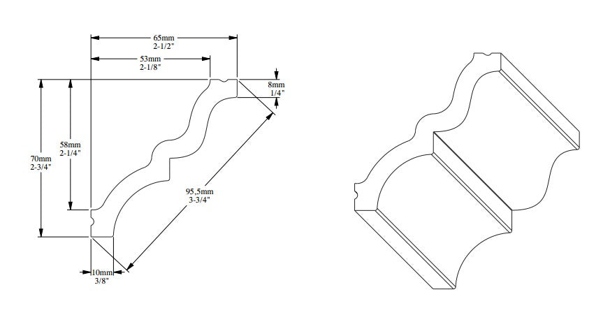 French Manor Coving No.325, at 7cm in height, ideal for standard ceilings, exudes precision and sophistication. With graceful, flowing lines and a substantial depth, it adds a captivating three-dimensional effect, enhancing your space's charm. Whether renovating a historic home or elevating your interior, No.325 brings timeless opulence to your living space.