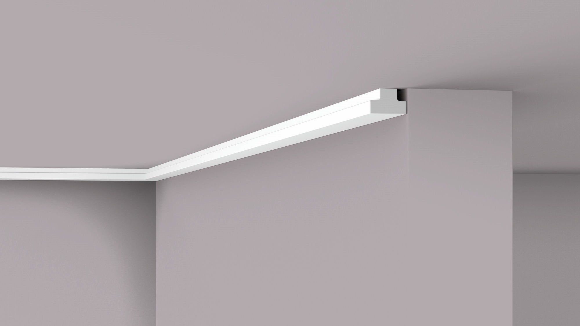 The T40 cubic geometric coving delivers bold architectural presence with its sharply defined edges and block-like profile. The straight lines and square geometry make it ideal for modern, design-led interiors and commercial environments seeking a strong structural aesthetic.