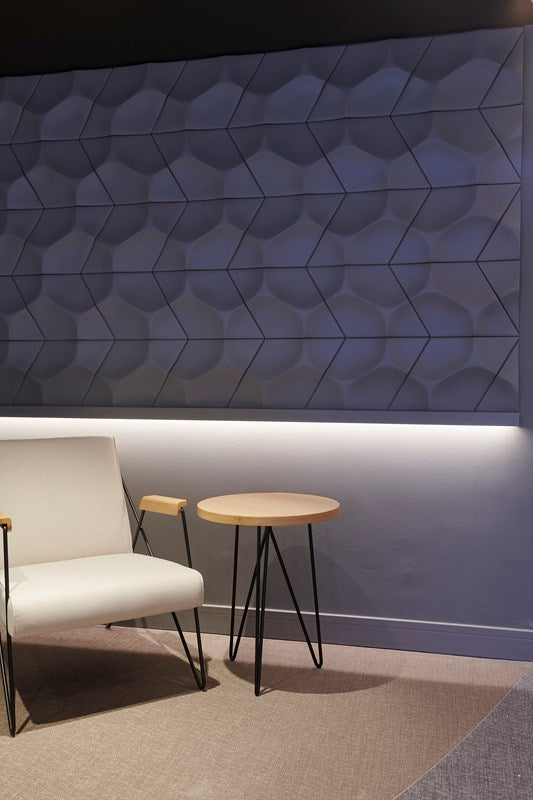 The Ray Wall Panel from our Studio Range delivers a dynamic geometric relief that introduces movement and depth to contemporary interiors. Its elongated 55cm profile creates sculptural shadow lines, making it ideal for feature walls in living spaces, offices, stairwells, boutique retail environments and hospitality projects. Panels can be rotated or combined to build striking directional patterns or soft, flowing layouts.