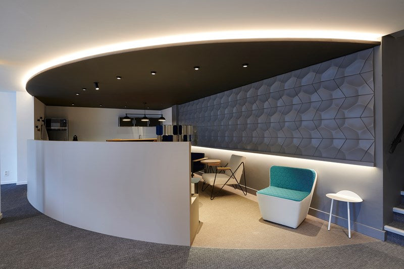 Whether installed in a repeating grid or a bespoke orientation, Ray adds a refined, design-led architectural dimension to modern interiors.