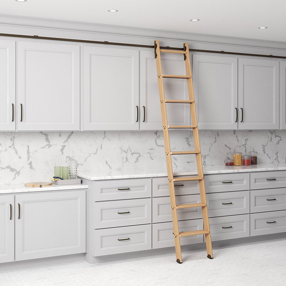 This 8ft ladder kit in premium oak is equipped with a sliding hook system finished in bronze. Perfect for cabinetry, libraries, and interior fit-outs, the kit includes all top and bottom hardware needed for a smooth and secure install. Designed to blend craftsmanship with functionality, it's ideal for both modern and traditional interiors.