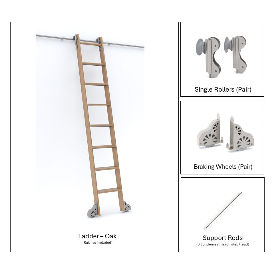 - Includes: 2 x Single Rollers, 2 x Braking Wheels and ladder fixings