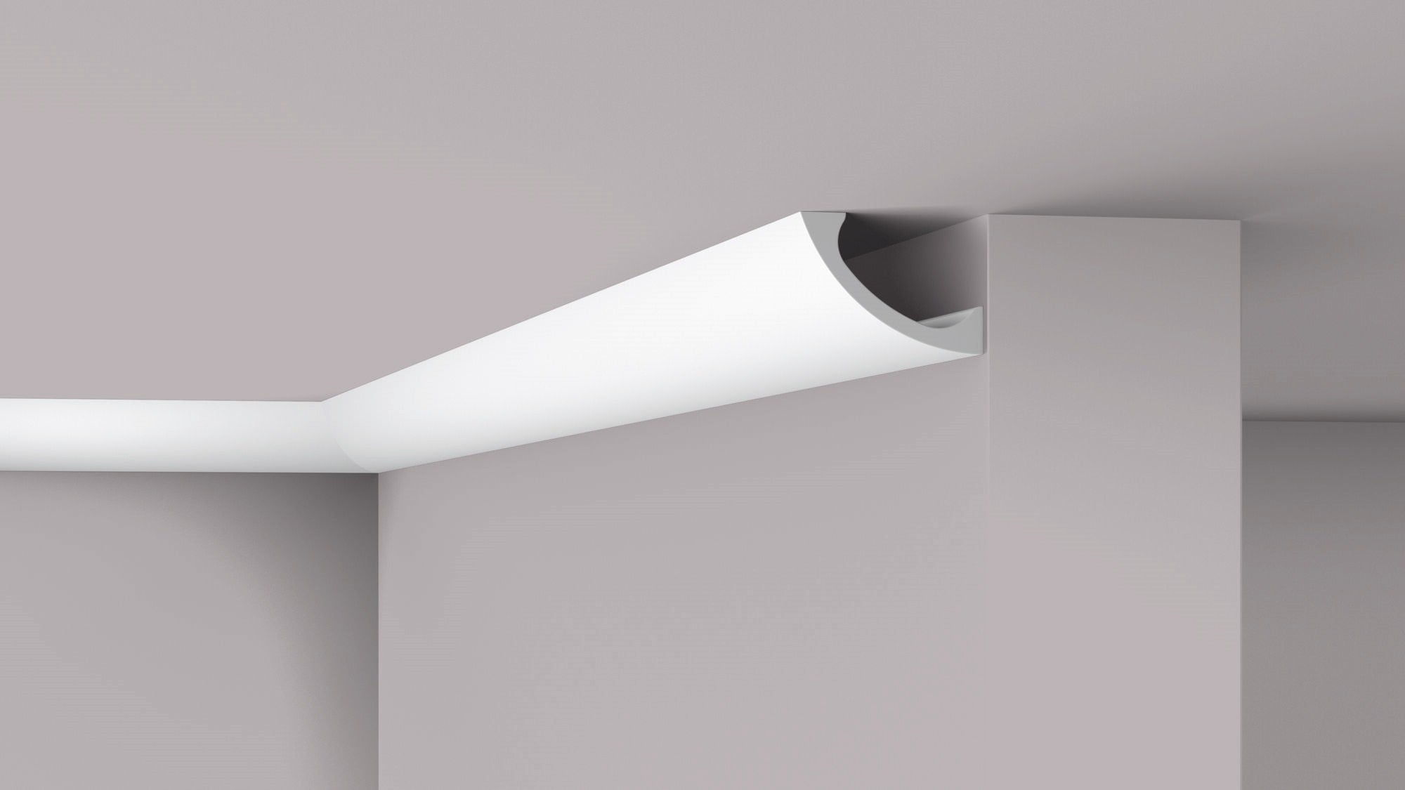 WT3 offers a simple, softly curved coving profile that frames ceilings with understated elegance — perfect for minimal-style interiors seeking subtle architectural refinement. Its rounded contour brings a gentle transition from wall to ceiling without visual clutter.