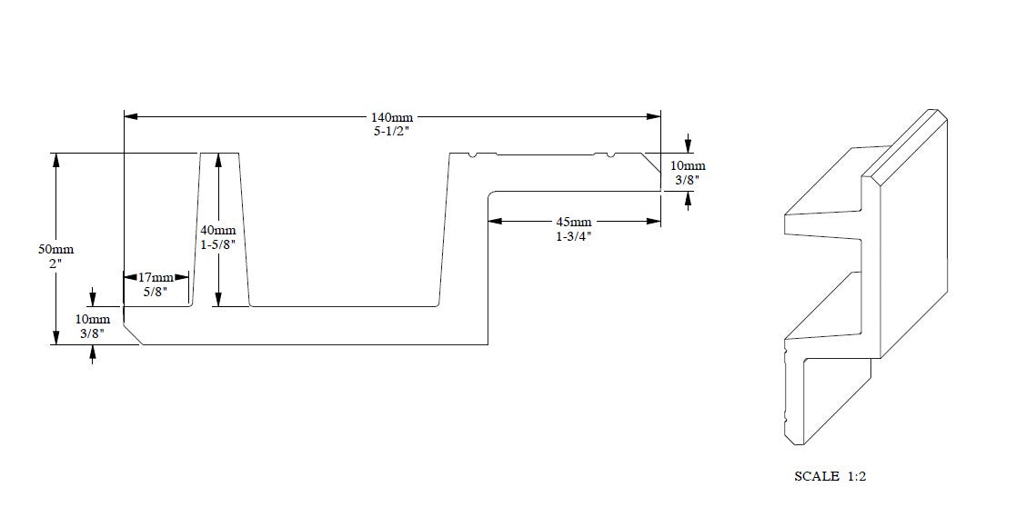 14cm (High) x 5cm (Width, Projection) x 200cm (Length)