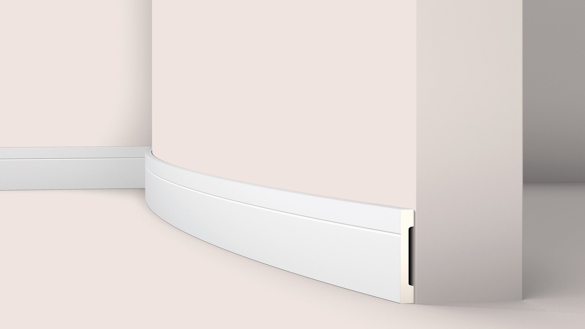 Made from durable, impact-resistant polymer, the FD2 protects walls from scuffs, daily wear, and vacuum or furniture contact. It is also available in a flexible version (FD2F), allowing the profile to curve effortlessly around rounded walls or architectural features for a seamless, continuous finish. Supplied white pre-primed, it is ready for painting in any colour to match or contrast with your interior scheme.