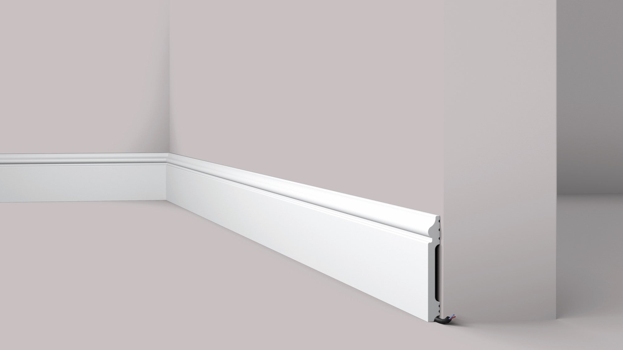 The FL2 Smooth Wall Skirting (120 x 15 mm) provides an elegant, polished transition between wall and floor, adding a refined finishing touch to both classic and contemporary interiors. Its subtle detailing allows the profile to blend effortlessly with a wide variety of design styles.