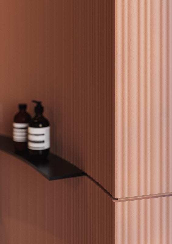 Designed as a full-height 200cm profile, Calando allows the wave pattern to run seamlessly from floor to ceiling, enhancing the sense of height and architectural continuity. The panel can be installed as a single statement wall, wrapped around a room, or combined with other Studio Range designs for a layered, bespoke scheme.