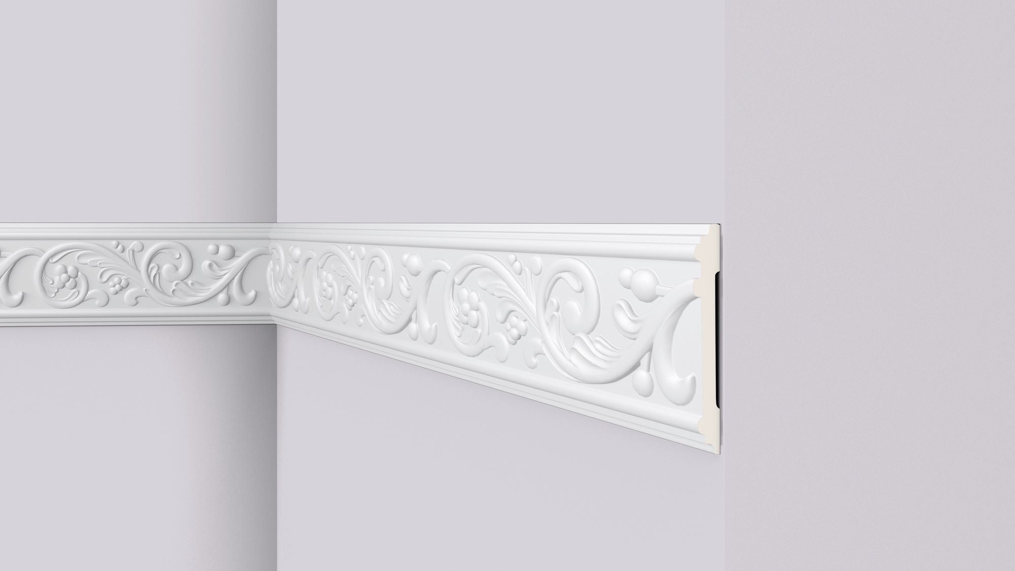 The Z12 Sculptural Chair Rail from our Studio Range features a tall, elegantly detailed profile with delicate floral-inspired relief, bringing classical character and timeless sophistication to any interior. Perfect for traditional design schemes or for adding ornate contrast within contemporary spaces, this decorative profile delivers both visual impact and architectural refinement.
